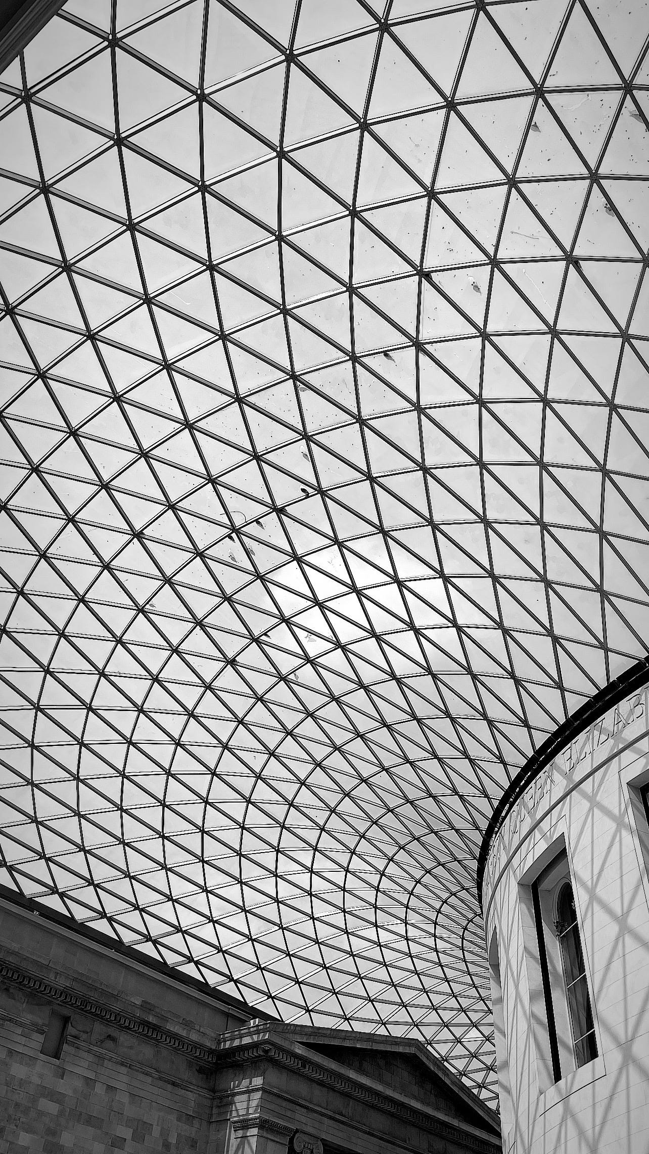 One of the best secular architectural experiences you can have—where the whole space seems to create a symphony of experience around you, is when you step into the British Museum’s Great Court and you are both inside and out, under the lattice skylight and yet facing what feels like exterior walls. It’s the type of space that fills your mind with awe, transcendence, ambition, opportunity, inspiration, or whatever else you need to feel at that moment…
